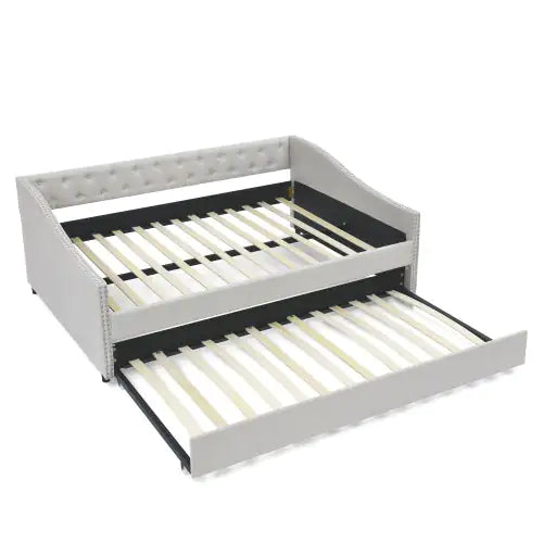 The Full-size Sofa Bed Features A Double Upholstered Tufted Sofa Bed On Wheels Unavailable Platforms- Temu - Beige