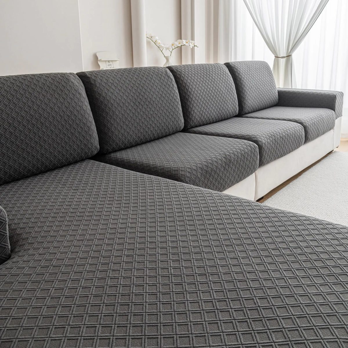 QIANMEW Sofa Covers WashableStretch Comfort Couch Cushion Covers L Shape Sectional Sofa Slipcovers Furniture Protectors Pet Friendly(3 Seaters+1 ChaiseDark Gray) - Dark Gray / Rhombus / 3 Seaters+1 Chaise