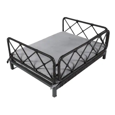 Wicker Pet Bed Rattan Dog Sofa Bed Outdoor Indoor Water Resistant - Black