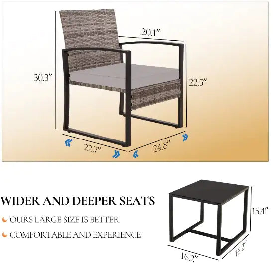 Product Name: Outdoor PE Wicker Furniture 3 Piece Set Patio Grey Rattan Modular Sofa with Washable Cushions